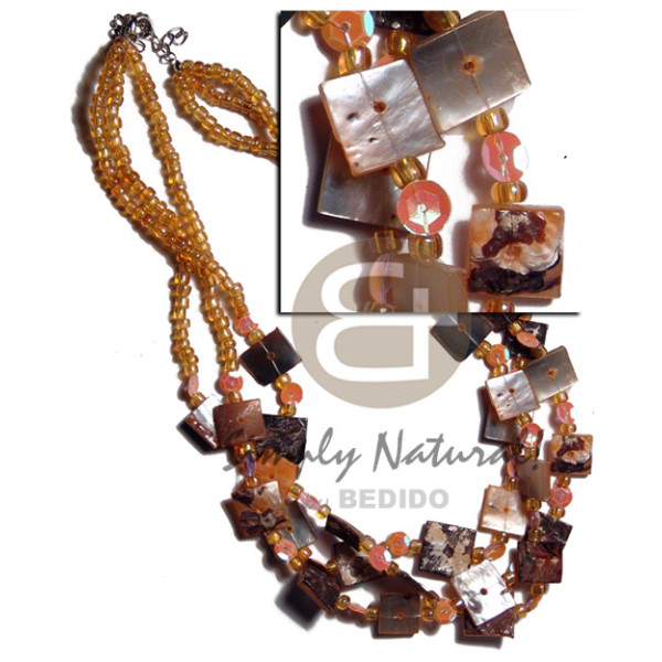 3 layer glass beads and 1 layer 4-5mm coco Pokalet tiger accents and 60mmx40mm brownlip teardrop pe..