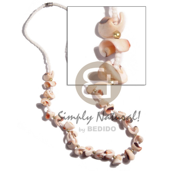 brownlip tiger shell nuggets in magic wire pearl beads and shell chips combination / brown tones..