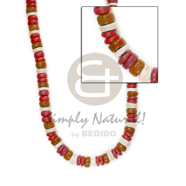 4-5mm coco heishe nat. white red/nat. coco indian stick & white rose combination..