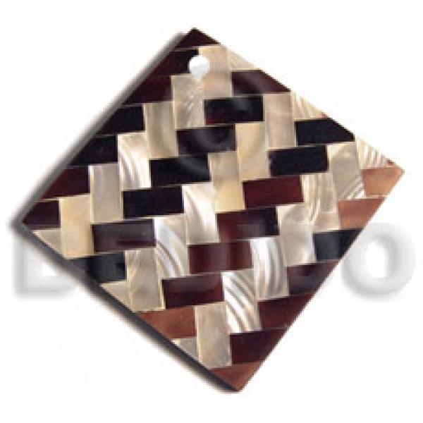 square 50mm flat resin laminated diagonal cut blacklip/kabibe shell combination..