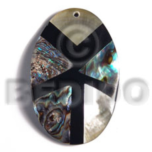 55mmx35mm aminated oval paua/blacklip shell combination 5mm black resin backing..