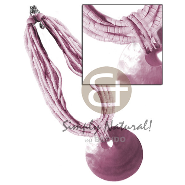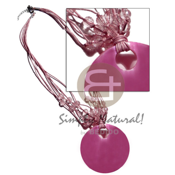 6 rows pink wax cord acrylic crystal accent and 65mm round pink kabibe shell pendant..