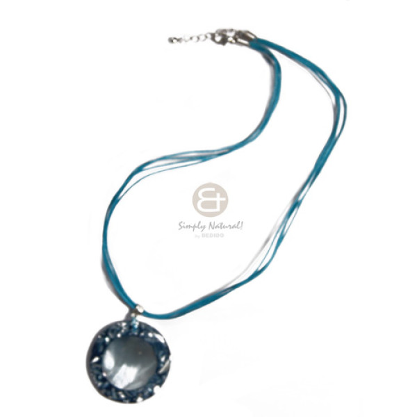 6 layer lavender wax cord matching 40mm round handpainted MOP pendant..