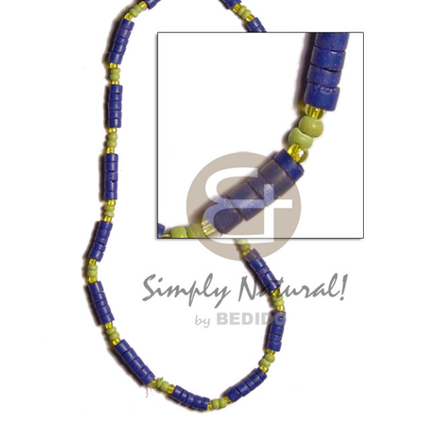 4-5mm navy blue coco heishe 2-3mm lime green coco Pokalet/glass beads..
