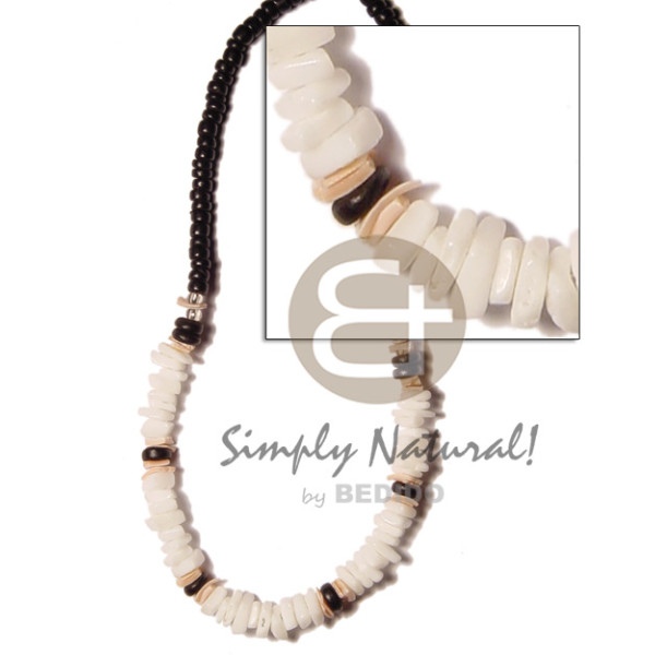 2-3mm coco heishe bleach white rose/blue hammershell heishe/Pokalet 2-3mm nat brown..