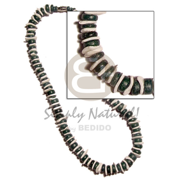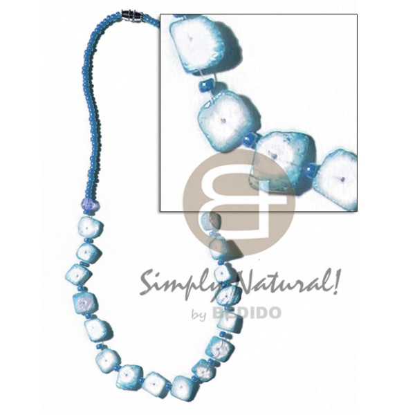 sq. cut white rose 4-5 mm aqua blue/bright green coco heishe alternate..