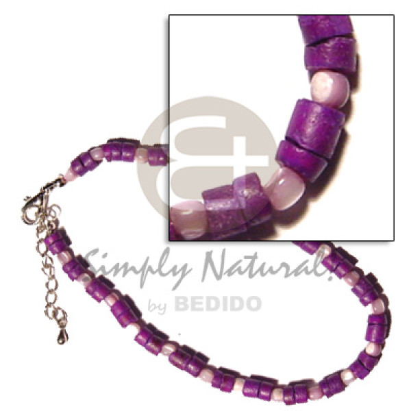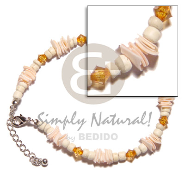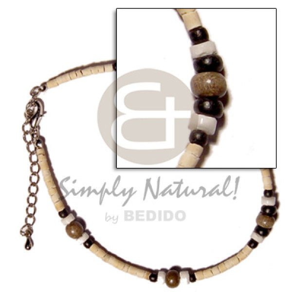 2-3mm coco Pokalet. bleach/black white clam & robles wood beads..