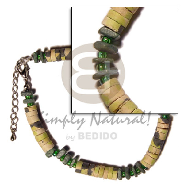 4-5mm coco heishe fatigue splashing green coco square cut & glass bead combination..