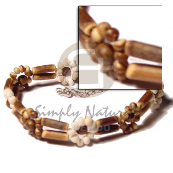 2 rows sig-id wood tube tiger/bleach white 2-3mm coco pokalet flower..
