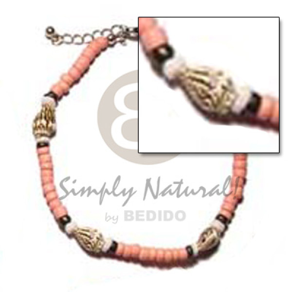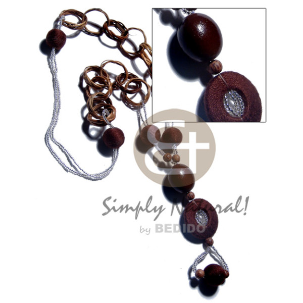 4-5mm coco Pokalet nat. brown/black/red white clam heishe & palwood beads combination..