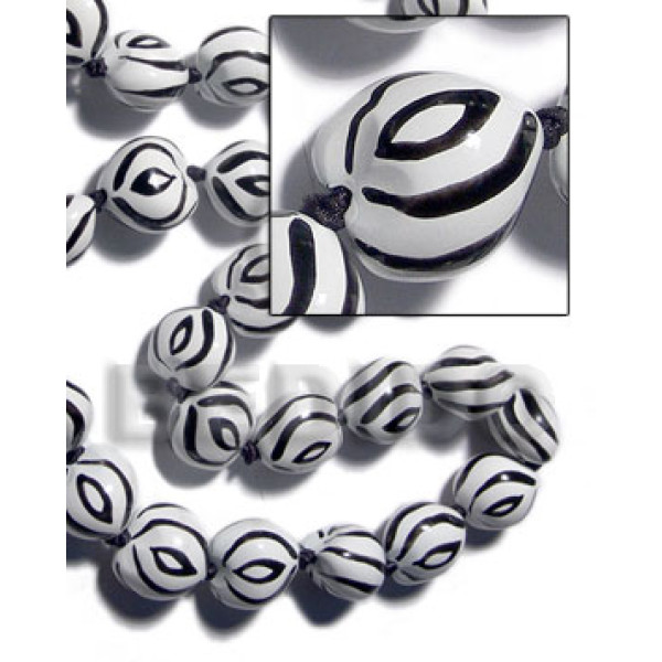 7 pcs. 20mmx20mm brownlip squares in black criss cross wax cord wood beads..