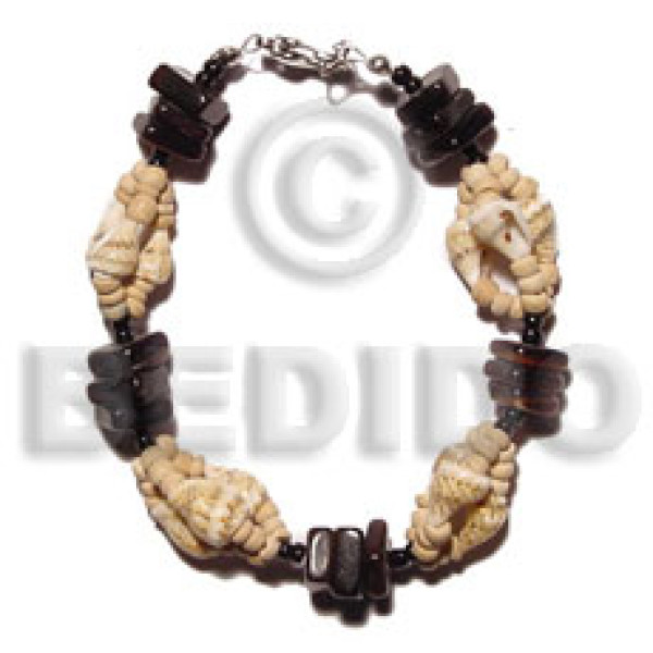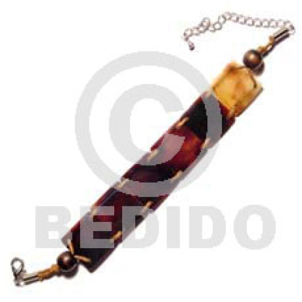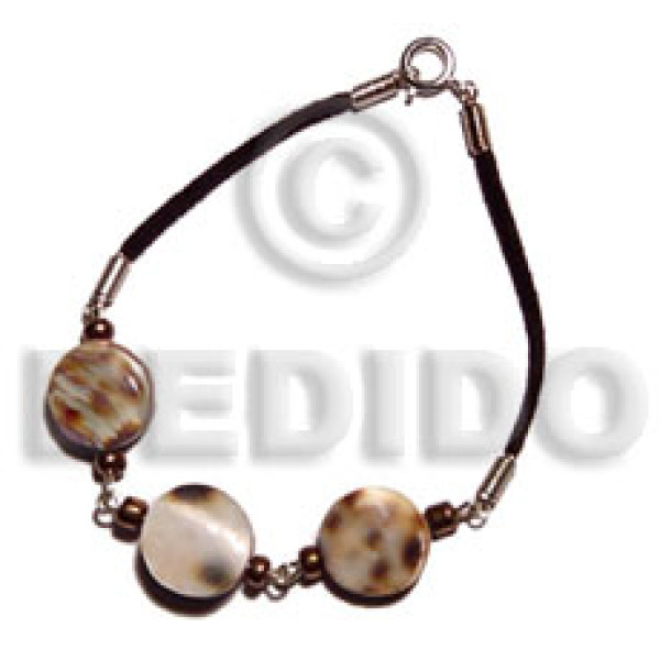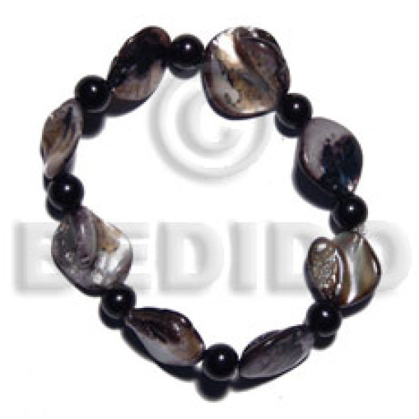 15mm dangling round blacklip skin and wood beads combination / elastic bracelet..