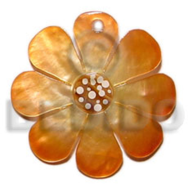 dangling rounded back to back heart 25mm shell/ orange tones..