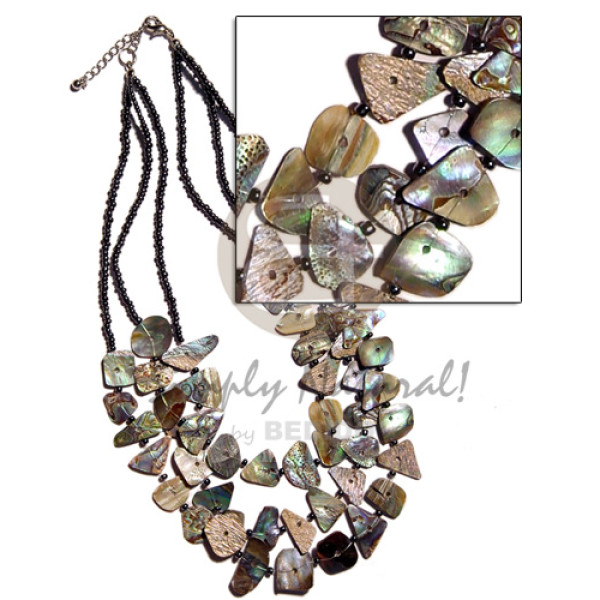 40mm rectangular blacklip pendant troca beads in wax cord..