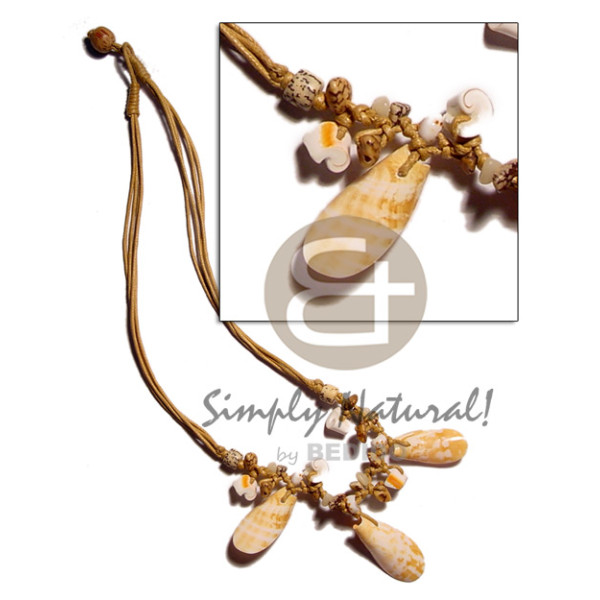 3 layers wax cord buri seeds. everlasting luhuanus & 3 pcs. shell pendants..