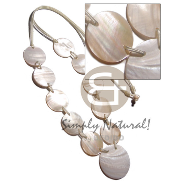 10 pcs. 35mm round kabibe shells & 1pc. 50mm round kabibe shell center accent in satin double cord /..