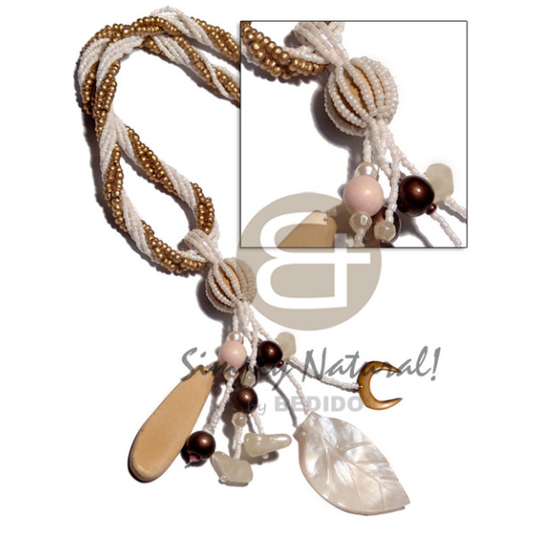 glass,horn, & wood beads combination shell fetish accent..