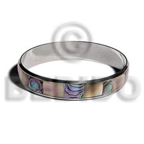 laminated natural abalone in 5mm stainless metal / 65mm in diameter / price per piece..