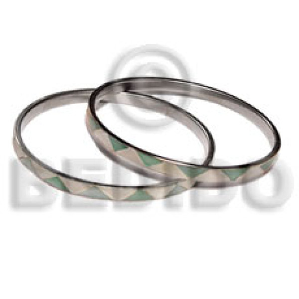 laminated hammershell nat. white/green zigzag alt. in 5mm stainless metal / 65mm in diameter / price..