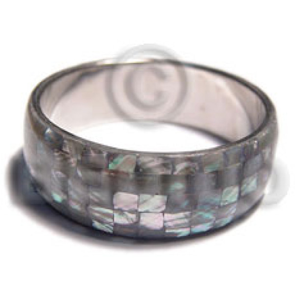 h=37mm thickness=10mm inner diameter=65mm paua shells laminated in ocean blue clear resin..