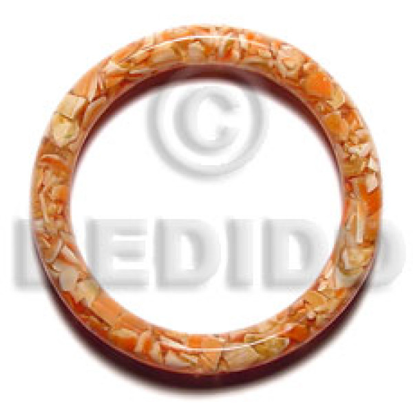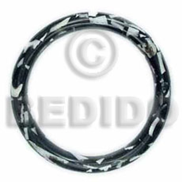 50mm round black resin ( 6mm thickness ) laminated crushed yellow capiz shells elastic bangle..