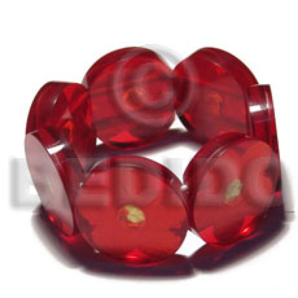 30mm round red clear resin ( 7mm thickness ) laminated capiz shell flower elastic bangle / yellow c..