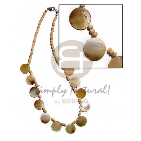 laminated inlaid brownlip in 1 inch stainless metal / 65mm in diameter..