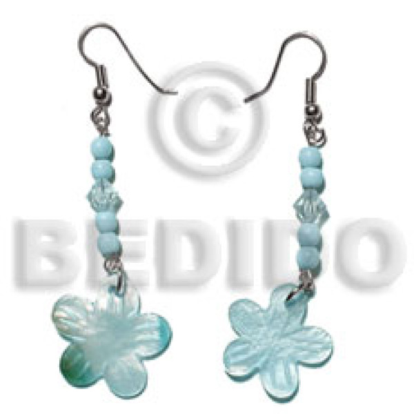 dangling 20mm aqua blue hammershell flower bone beads/acrylic crystals..