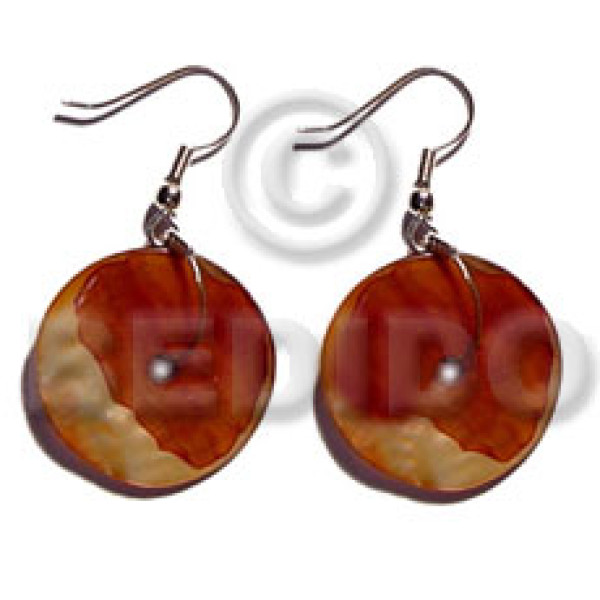 dangling 30mm round laminated golden amber kabibe shell rings in high gloss wood beads accent..