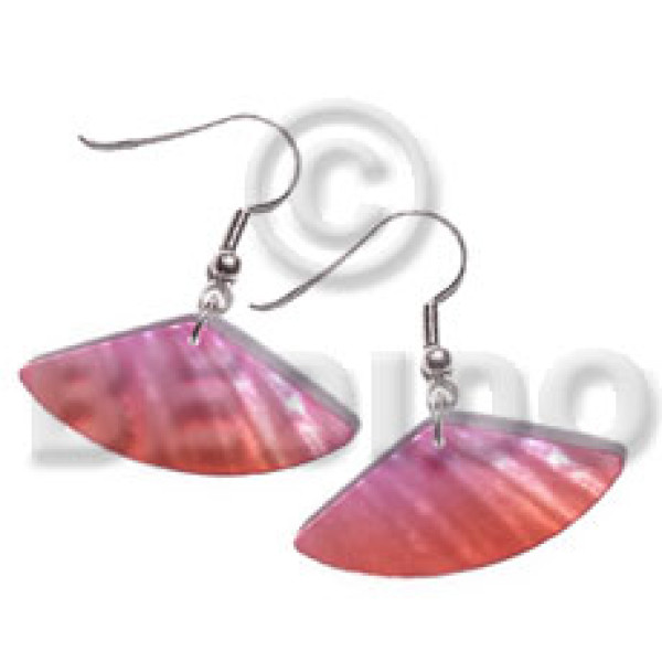 dangling 10x40mm pastel pink hammershell leaf and beads earrings..