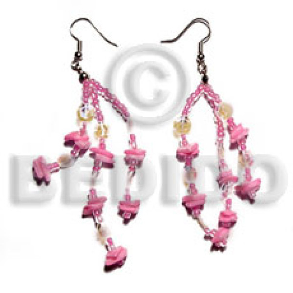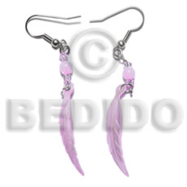 dangling 10x40mm pastel pink hammershell leaf and beads earrings..