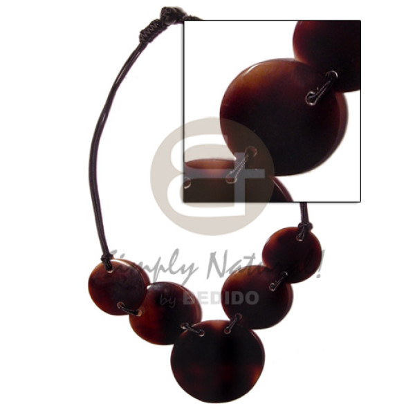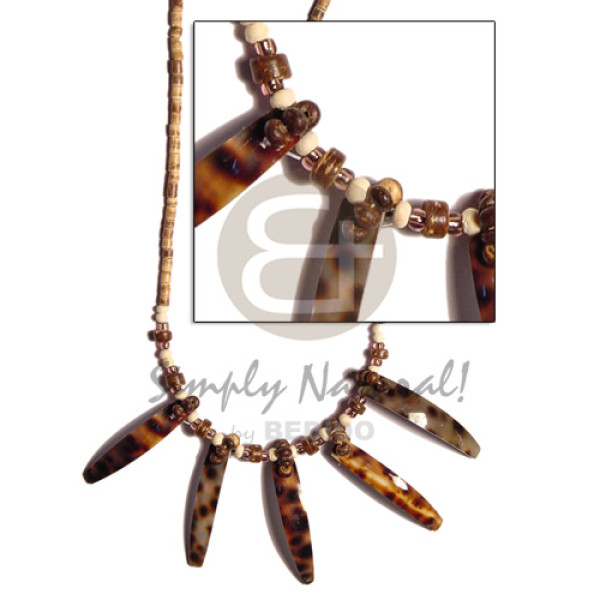 2-3mm nat. brown coco Pokalet. tassled wood beads & moon shell combination /26 in...