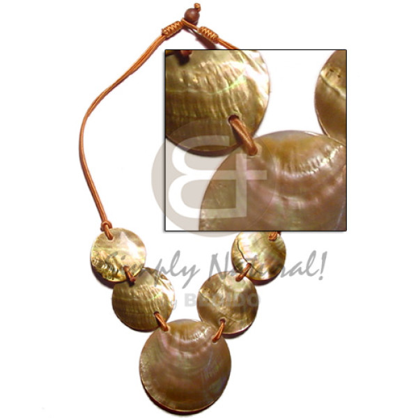 25mm ring hammershells dangling 40mmx10mm blacklip sticks in double leather thong wood beads accen..