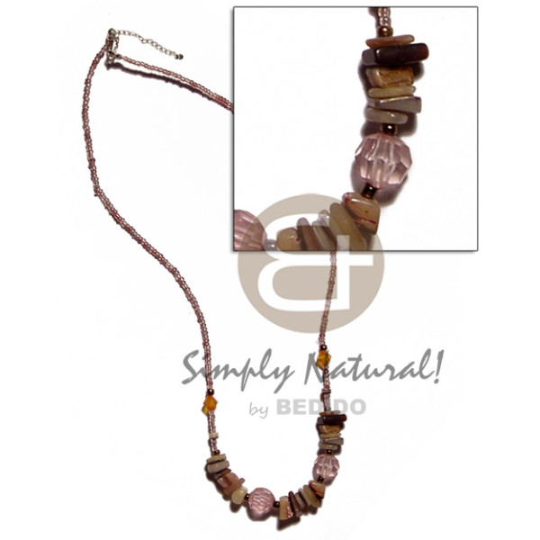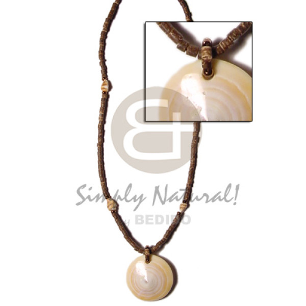 2-3mm nat. brown coco Pokalet. tassled wood beads & moon shell combination /26 in...