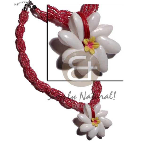 6 rows tassled red glass beads 25mmx20mm rectangular brownlip resin backing & pearl beads..