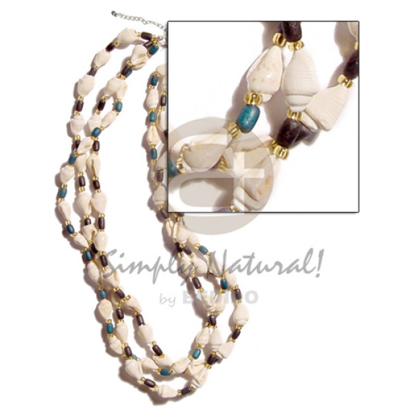 3 rows twisted 7-8mm coco heishe tiger nat. wood beads combination accent and round 80mm kabibe shel..