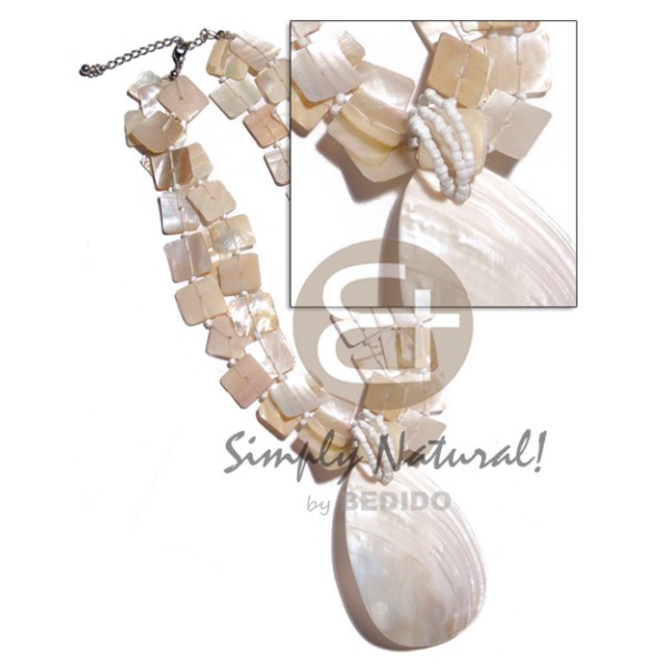 3 rows 15mm floating kabibe squares matching 70mmx50mm kabibe teardrop pendant..