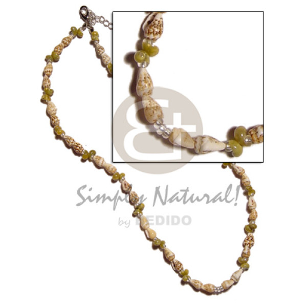 3 rows mint green hammershell 12mm chips skin and glass beads combination..