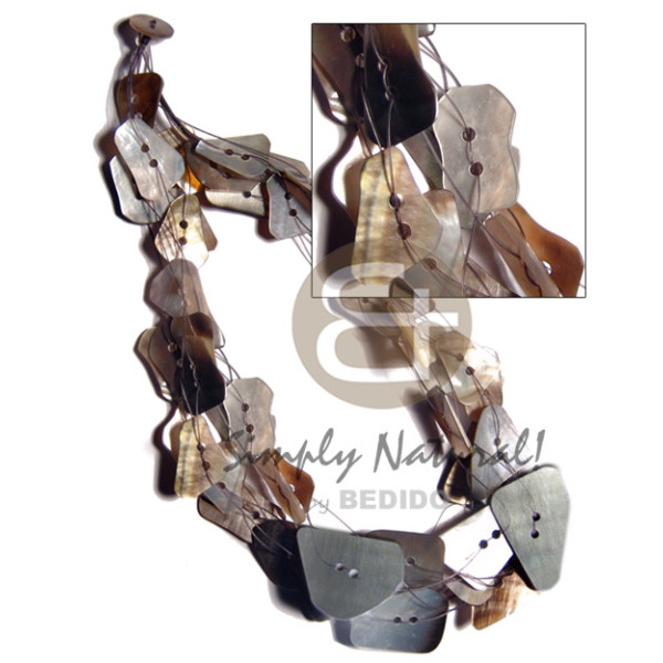 choker / double black wax cord laminated MOP in black resin / 145mmx30mm /thickness 8mm / 15in..