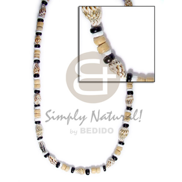 graduated coco heishe nat. brown white clam combination..
