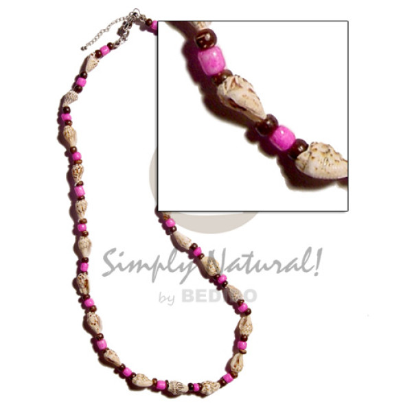 nassa tiger 4-5mm black coco Pokalet. combination pink glass beads..