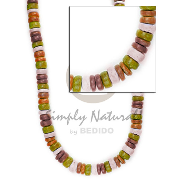white clam heishe, green shell heishe , wood tube 4-5mm coco Pokalet. black combination..