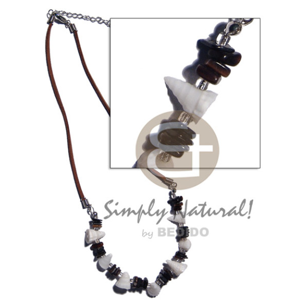 4-5mm coco Pokalet natural 8mm coco Pokalet bleach & greywood beads accent..