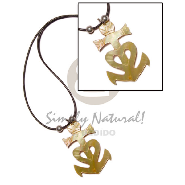 olive green leather thong trocus shell pendant (approx. 30mm - varying natural sizes ) molten gold ..