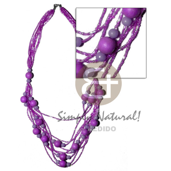 5 rows graduated multilayered cut glass beads buri seeds and wood beads accent/lilac tones / 32 ..