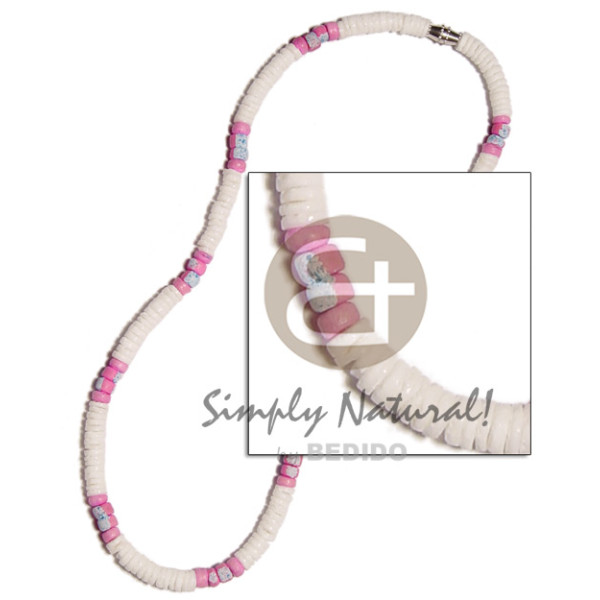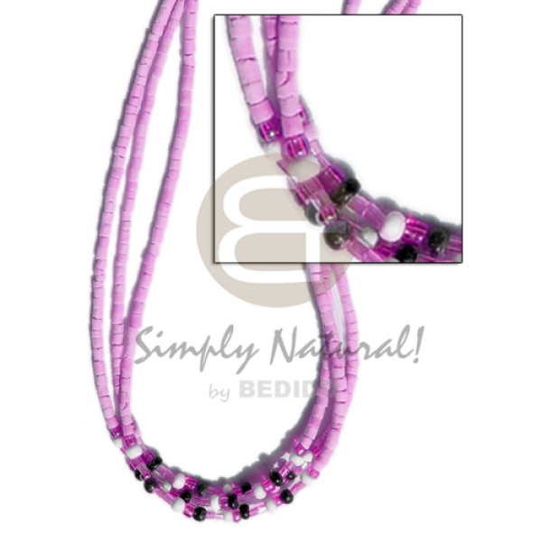 3 rows lilac coco heishe / glass beads / black & bleach pukalet combination..
