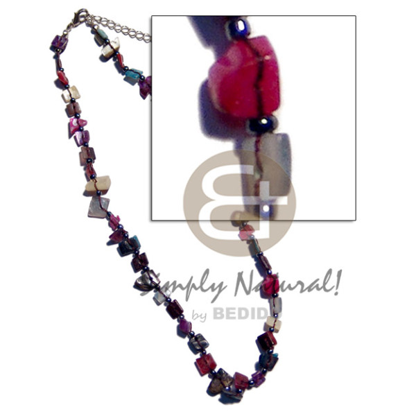 2-3mm coco heishe bleach blue/yellow sq cut hammershell & oval MOP pendant..
