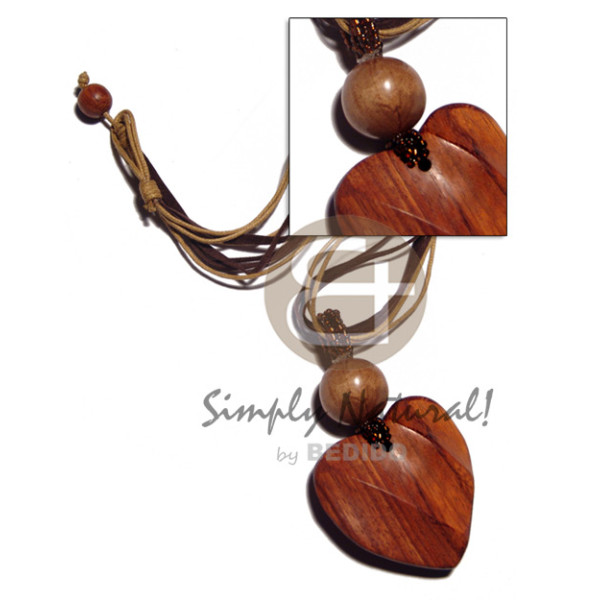 4 layers leather thong & wax cord combination 20mm wood beads and 48mmx48mm grooved heart bayong (1..