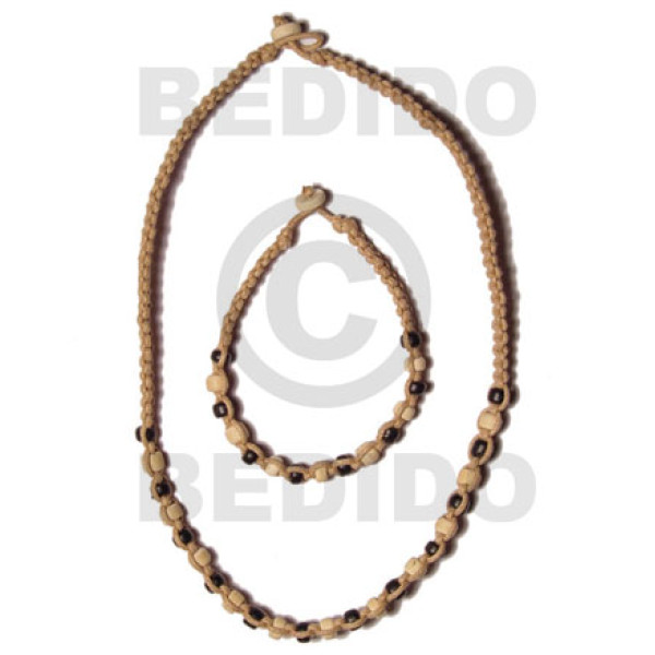 bamboo tube burning and palmwood beads combination on a wax cord / 16in..