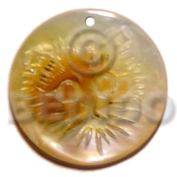 15mm robles round beads handpainted back to back yellow / orange / white flower..